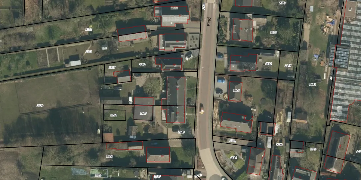 Het perceel waarop Eind 8-c staat heeft een oppervlakte van 5175 m². Dit is een zeer groot perceel. De perceeloppervlakte wordt geregistreerd door het Kadaster. Gedetailleerde informatie over de maten van dit perceel kunt u vinden in het rapport Kadastrale kaart met maatvoering van Eind 8-c.