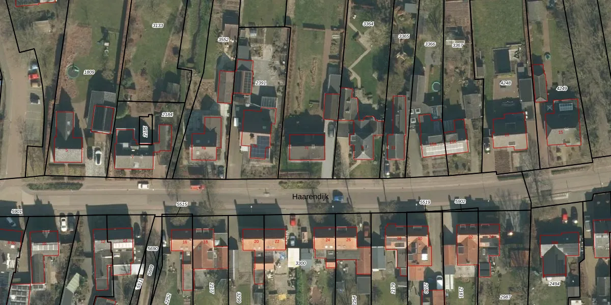 Het perceel waarop Haarendijk 7-c staat heeft een oppervlakte van 2695 m². Dit is een zeer groot perceel. De perceeloppervlakte wordt geregistreerd door het Kadaster. Gedetailleerde informatie over de maten van dit perceel kunt u vinden in het rapport Kadastrale kaart met maatvoering van Haarendijk 7-c.