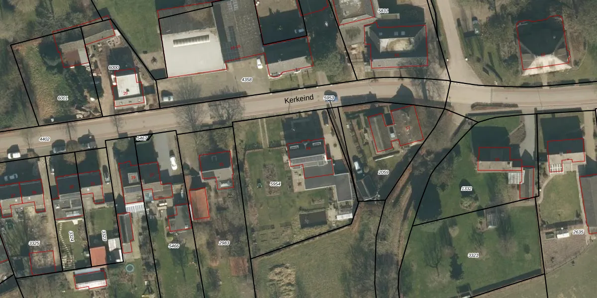 Kerkeind 19 is gelegen op kadastraal perceel HRN02E5954. Deze kadastrale aanduiding is uniek en wordt gebruikt door het Kadaster om eigendomsrechten en andere zakelijke rechten vast te leggen. Het perceel maakt onderdeel uit van de kadastrale gemeente Haaren.