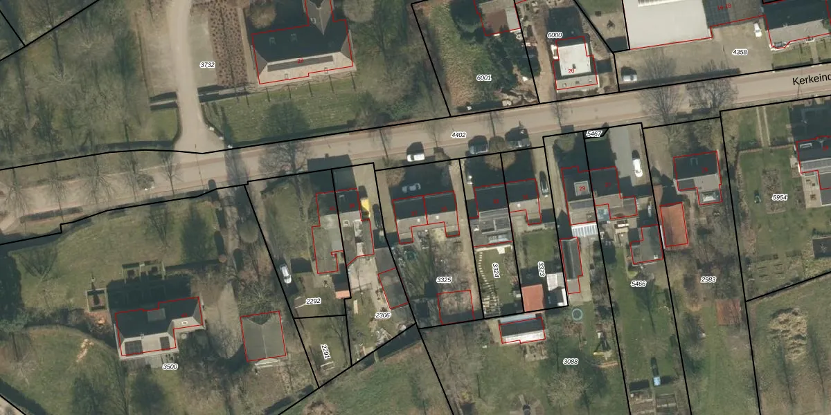 Kerkeind 37 is gelegen op kadastraal perceel HRN02E3325. Deze kadastrale aanduiding is uniek en wordt gebruikt door het Kadaster om eigendomsrechten en andere zakelijke rechten vast te leggen. Het perceel maakt onderdeel uit van de kadastrale gemeente Haaren.