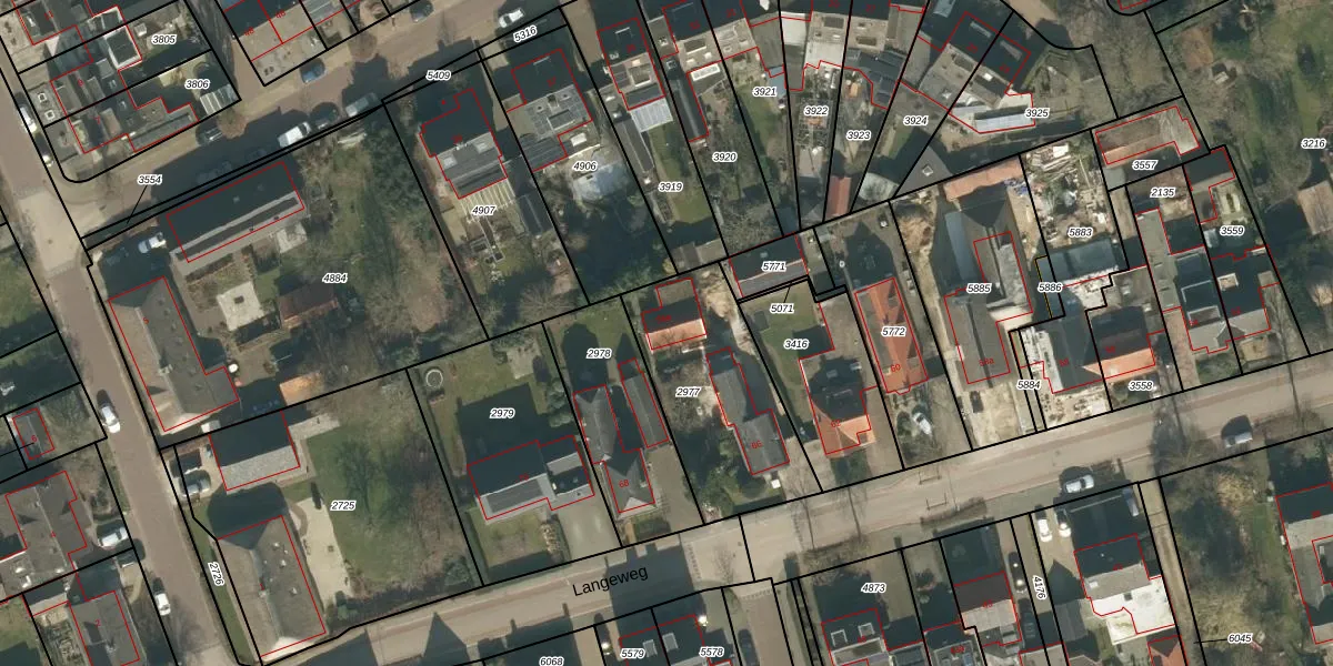 Het perceel waarop Langeweg 66-a staat heeft een oppervlakte van 625 m². Dit is een groot perceel. De perceeloppervlakte wordt geregistreerd door het Kadaster. Gedetailleerde informatie over de maten van dit perceel kunt u vinden in het rapport Kadastrale kaart met maatvoering van Langeweg 66-a.