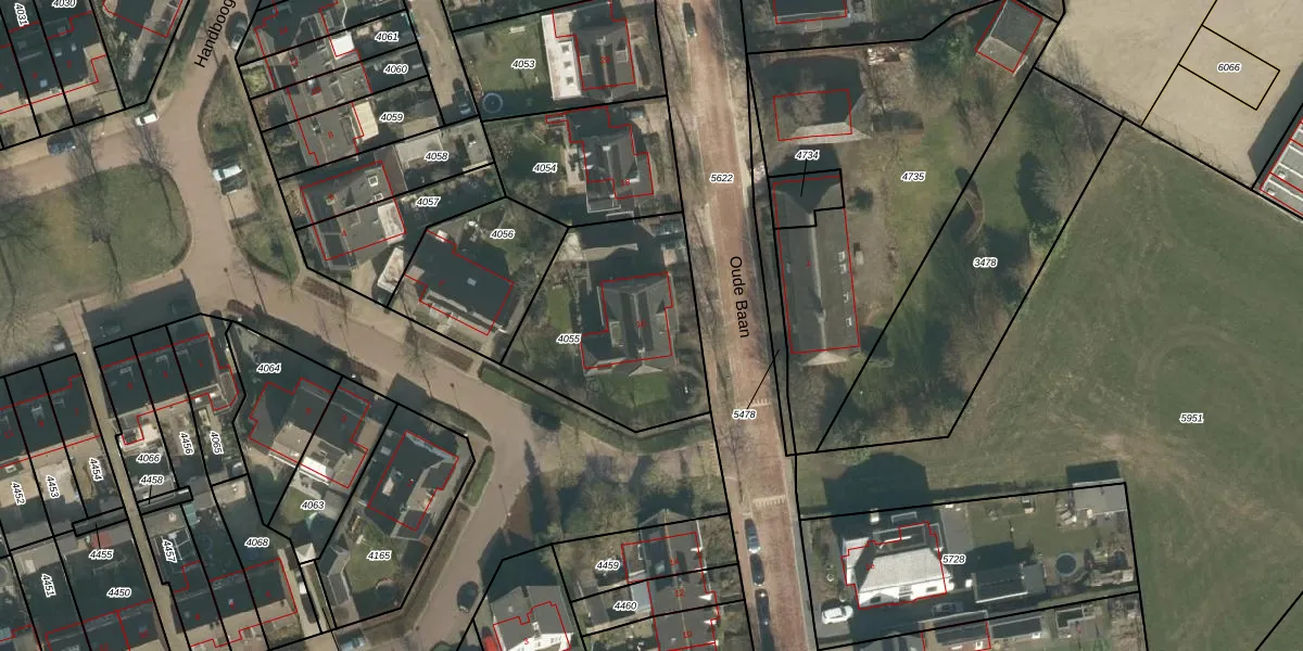 Het perceel waarop Oude Baan 16 staat heeft een oppervlakte van 745 m². Dit is een groot perceel. De perceeloppervlakte wordt geregistreerd door het Kadaster. Gedetailleerde informatie over de maten van dit perceel kunt u vinden in het rapport Kadastrale kaart met maatvoering van Oude Baan 16.