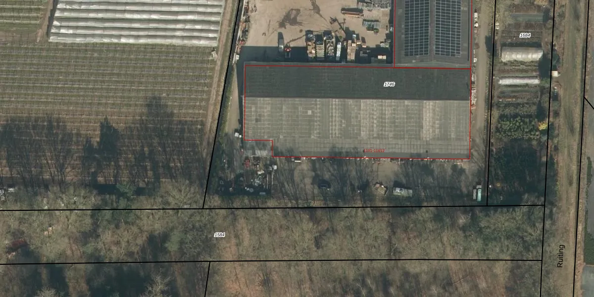 Het perceel waarop Ruiting 11-t-2 staat heeft een oppervlakte van 8145 m². Dit is een zeer groot perceel. De perceeloppervlakte wordt geregistreerd door het Kadaster. Gedetailleerde informatie over de maten van dit perceel kunt u vinden in het rapport Kadastrale kaart met maatvoering van Ruiting 11-t-2.