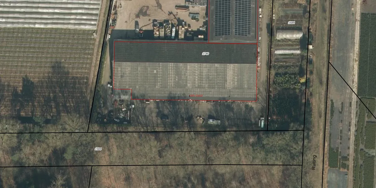 Het perceel waarop Ruiting 11-t-6 staat heeft een oppervlakte van 8145 m². Dit is een zeer groot perceel. De perceeloppervlakte wordt geregistreerd door het Kadaster. Gedetailleerde informatie over de maten van dit perceel kunt u vinden in het rapport Kadastrale kaart met maatvoering van Ruiting 11-t-6.