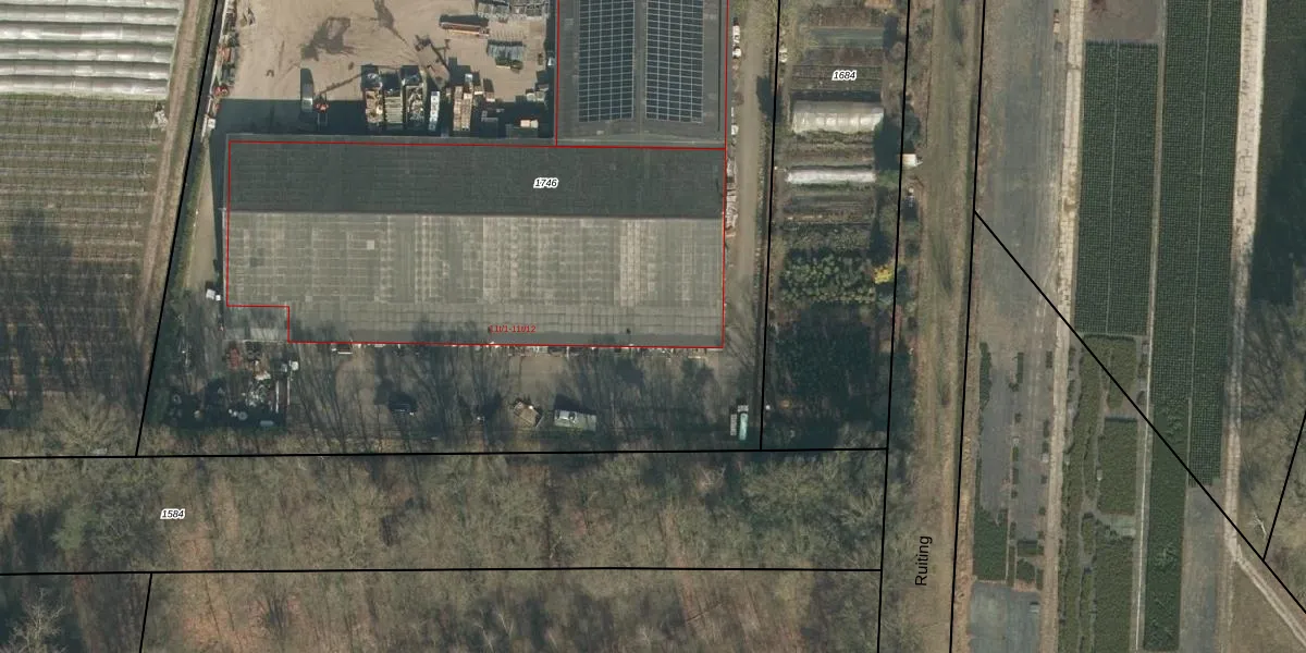 Het perceel waarop Ruiting 11-t-11 staat heeft een oppervlakte van 8145 m². Dit is een zeer groot perceel. De perceeloppervlakte wordt geregistreerd door het Kadaster. Gedetailleerde informatie over de maten van dit perceel kunt u vinden in het rapport Kadastrale kaart met maatvoering van Ruiting 11-t-11.