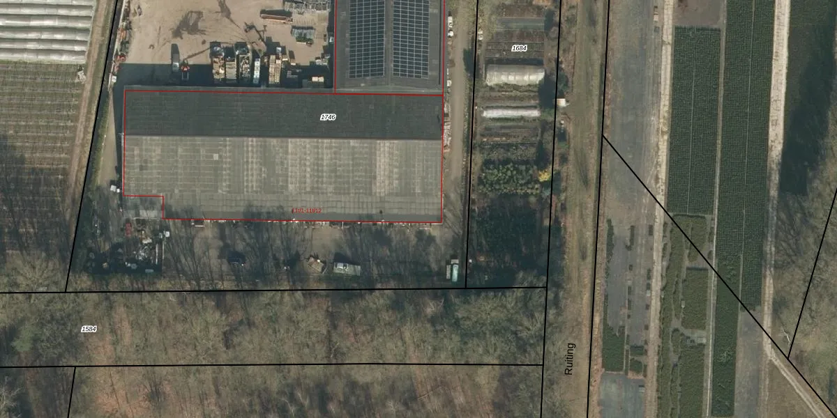 Het perceel waarop Ruiting 11-t-12 staat heeft een oppervlakte van 8145 m². Dit is een zeer groot perceel. De perceeloppervlakte wordt geregistreerd door het Kadaster. Gedetailleerde informatie over de maten van dit perceel kunt u vinden in het rapport Kadastrale kaart met maatvoering van Ruiting 11-t-12.