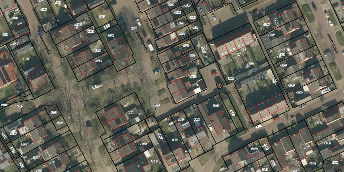 Het perceel waarop Tempeliersdal 57 staat heeft een oppervlakte van 369 m². Dit is een groot perceel. De perceeloppervlakte wordt geregistreerd door het Kadaster. Gedetailleerde informatie over de maten van dit perceel kunt u vinden in het rapport Kadastrale kaart met maatvoering van Tempeliersdal 57.