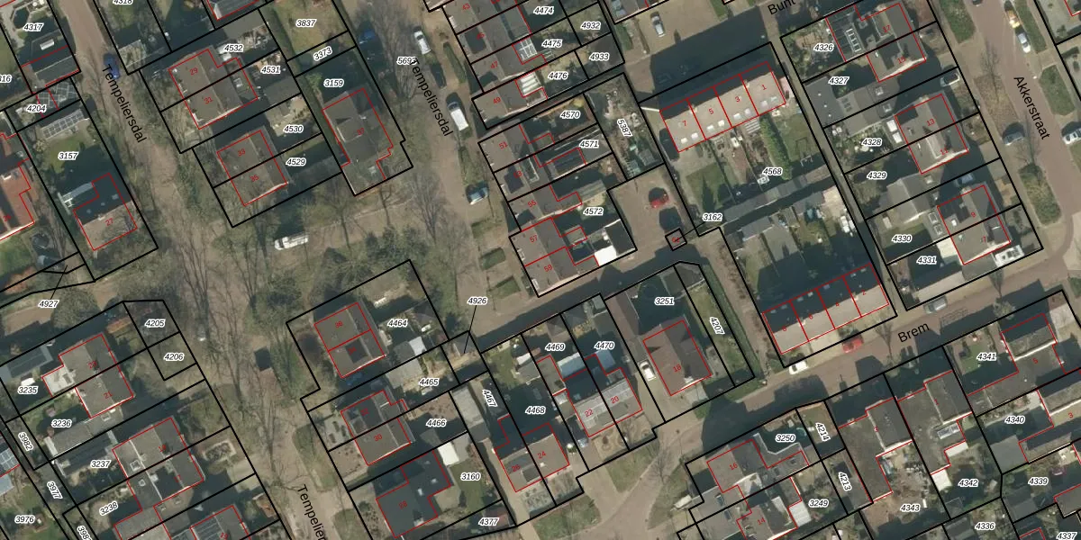 Het perceel waarop Tempeliersdal 59 staat heeft een oppervlakte van 369 m². Dit is een groot perceel. De perceeloppervlakte wordt geregistreerd door het Kadaster. Gedetailleerde informatie over de maten van dit perceel kunt u vinden in het rapport Kadastrale kaart met maatvoering van Tempeliersdal 59.
