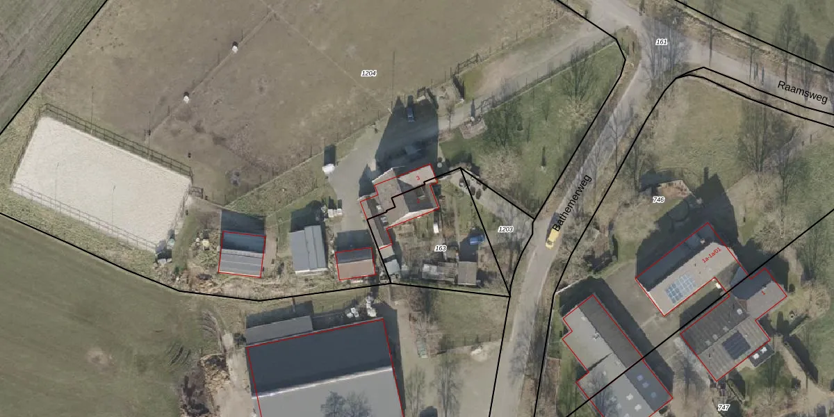 Het perceel waarop Bathemerweg 2 staat heeft een oppervlakte van 645 m². Dit is een groot perceel. De perceeloppervlakte wordt geregistreerd door het Kadaster. Gedetailleerde informatie over de maten van dit perceel kunt u vinden in het rapport Kadastrale kaart met maatvoering van Bathemerweg 2.