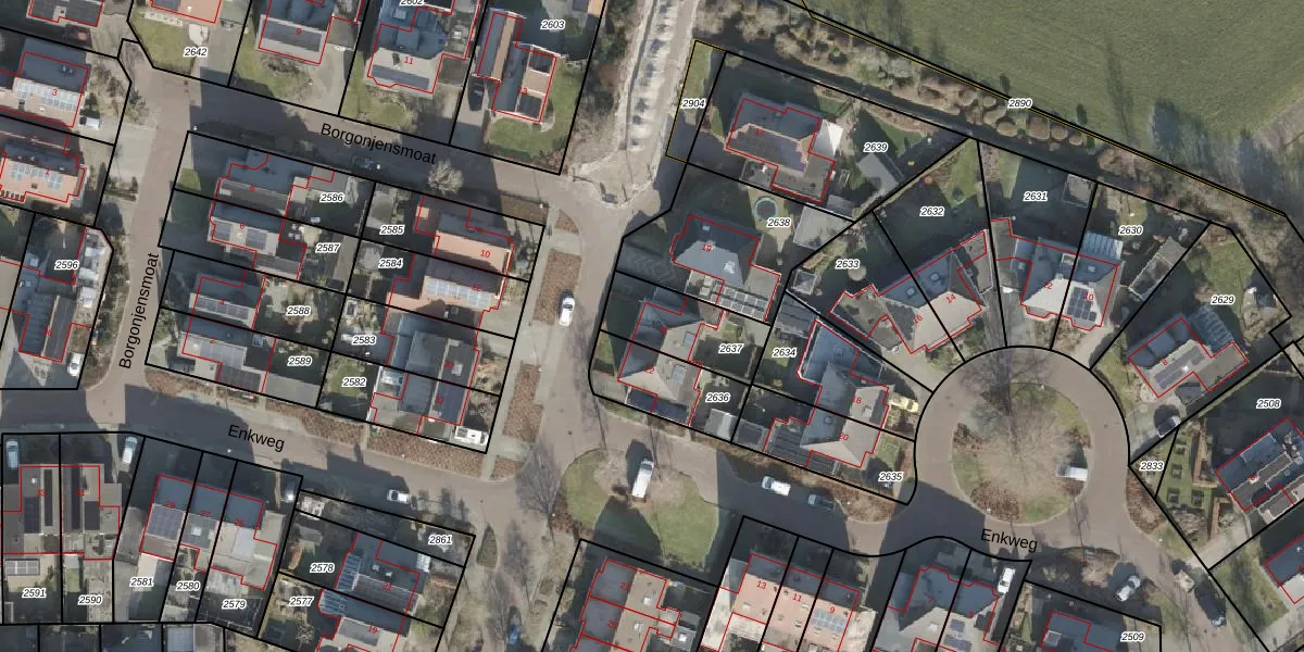 Gebruik de zoekbalk of klik op een perceel voor informatie over de adressen binnen dit perceel.