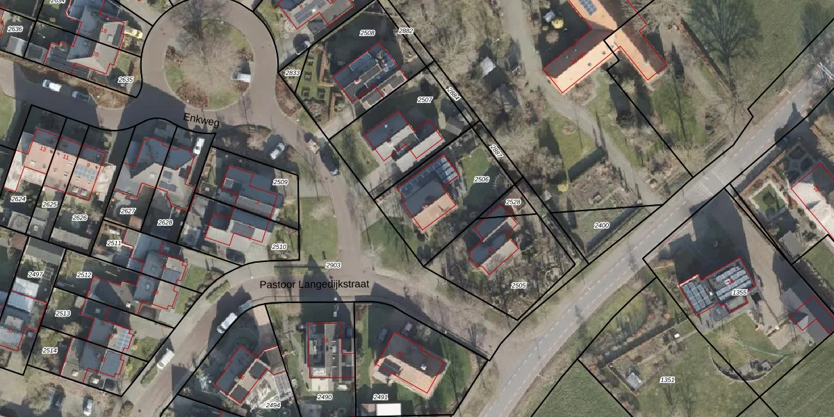 Het perceel waarop Enkweg 2 staat heeft een oppervlakte van 555 m². Dit is een groot perceel. De perceeloppervlakte wordt geregistreerd door het Kadaster. Gedetailleerde informatie over de maten van dit perceel kunt u vinden in het rapport Kadastrale kaart met maatvoering van Enkweg 2.