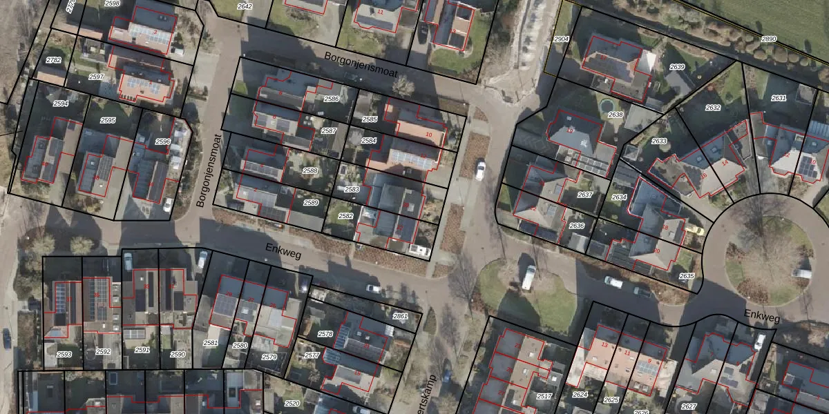 Gebruik de zoekbalk of klik op een perceel voor informatie over de adressen binnen dit perceel.