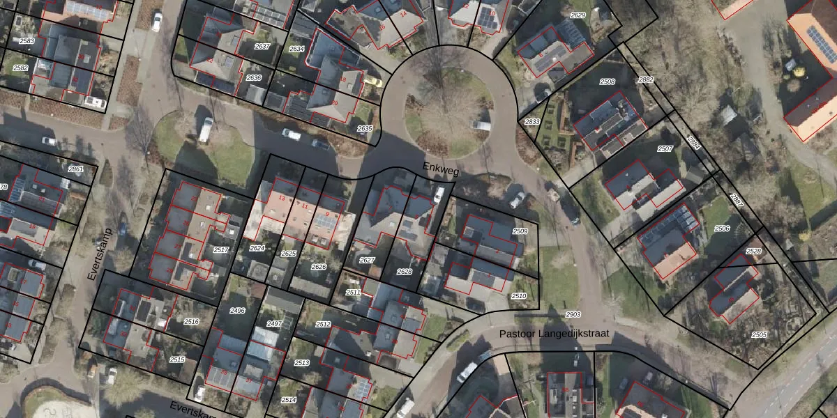 Het perceel waarop Enkweg 5 staat heeft een oppervlakte van 259 m². Dit is een middelgroot perceel. De perceeloppervlakte wordt geregistreerd door het Kadaster. Gedetailleerde informatie over de maten van dit perceel kunt u vinden in het rapport Kadastrale kaart met maatvoering van Enkweg 5.