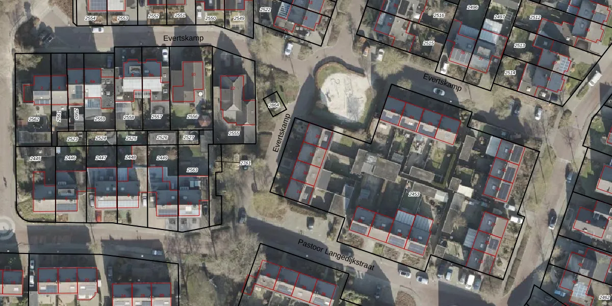 Evertskamp 18 is gelegen op kadastraal perceel HLD01F2453. Deze kadastrale aanduiding is uniek en wordt gebruikt door het Kadaster om eigendomsrechten en andere zakelijke rechten vast te leggen. Het perceel maakt onderdeel uit van de kadastrale gemeente Hellendoorn.