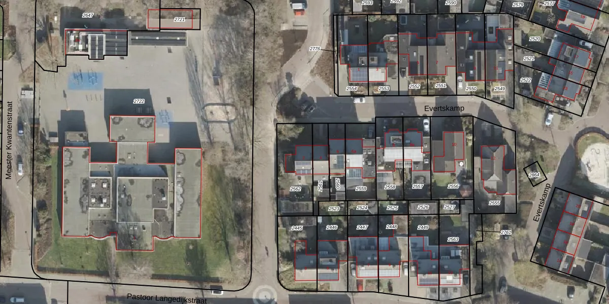 Het perceel waarop Evertskamp 2 staat heeft een oppervlakte van 356 m². Dit is een groot perceel. De perceeloppervlakte wordt geregistreerd door het Kadaster. Gedetailleerde informatie over de maten van dit perceel kunt u vinden in het rapport Kadastrale kaart met maatvoering van Evertskamp 2.