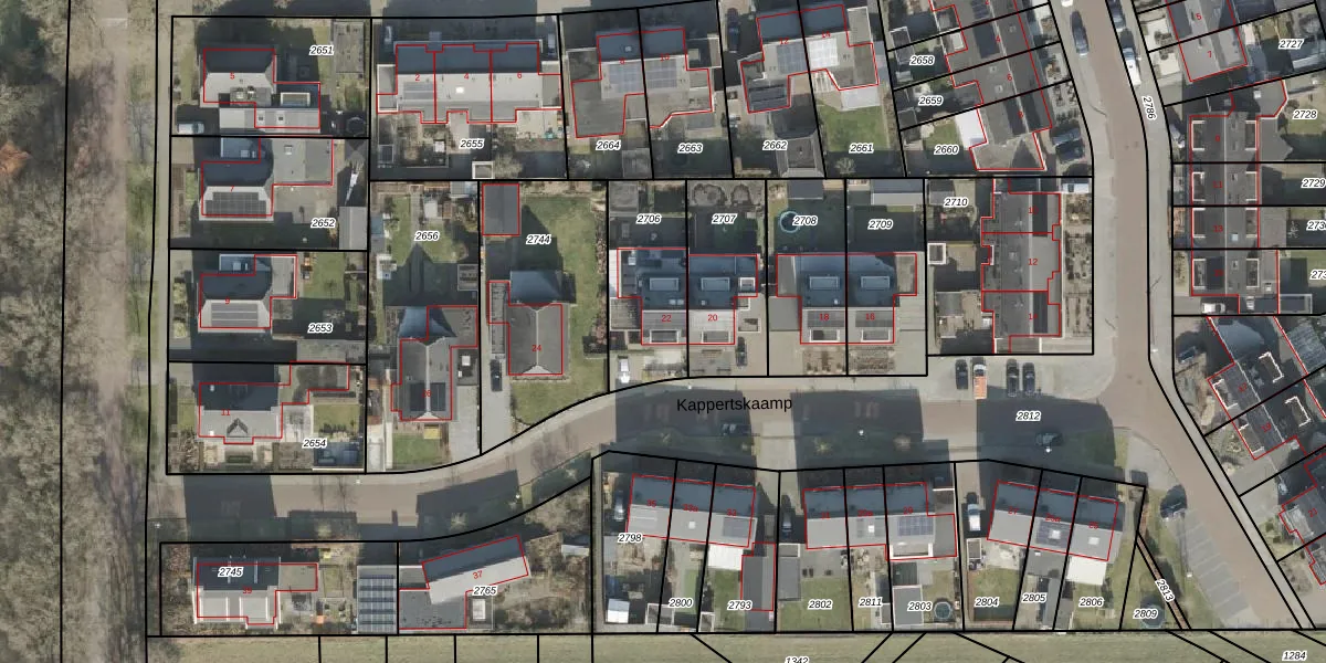 Het perceel waarop Kappertskaamp 22 staat heeft een oppervlakte van 370 m². Dit is een groot perceel. De perceeloppervlakte wordt geregistreerd door het Kadaster. Gedetailleerde informatie over de maten van dit perceel kunt u vinden in het rapport Kadastrale kaart met maatvoering van Kappertskaamp 22.
