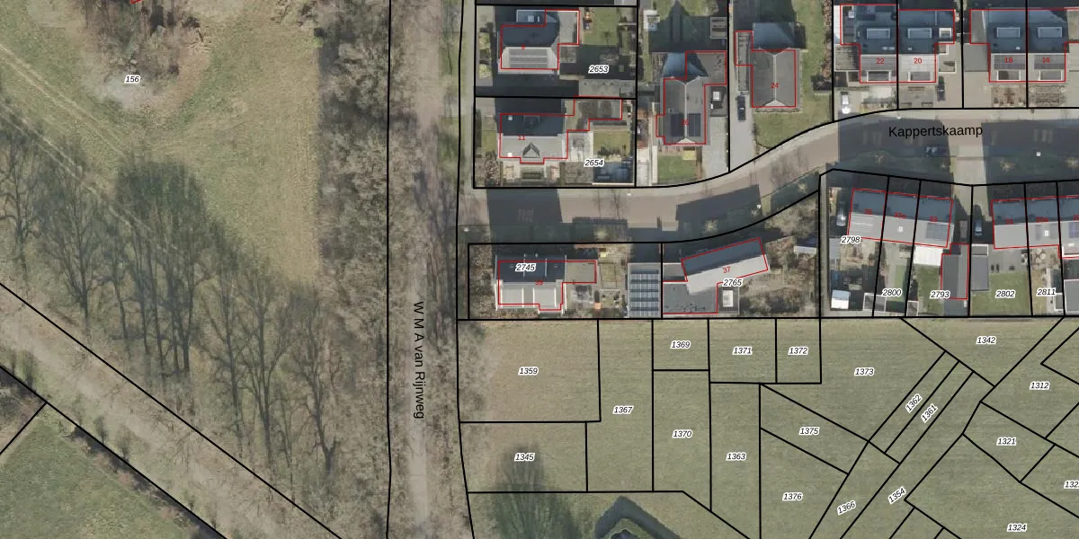 Gebruik de zoekbalk of klik op een perceel voor informatie over de adressen binnen dit perceel.