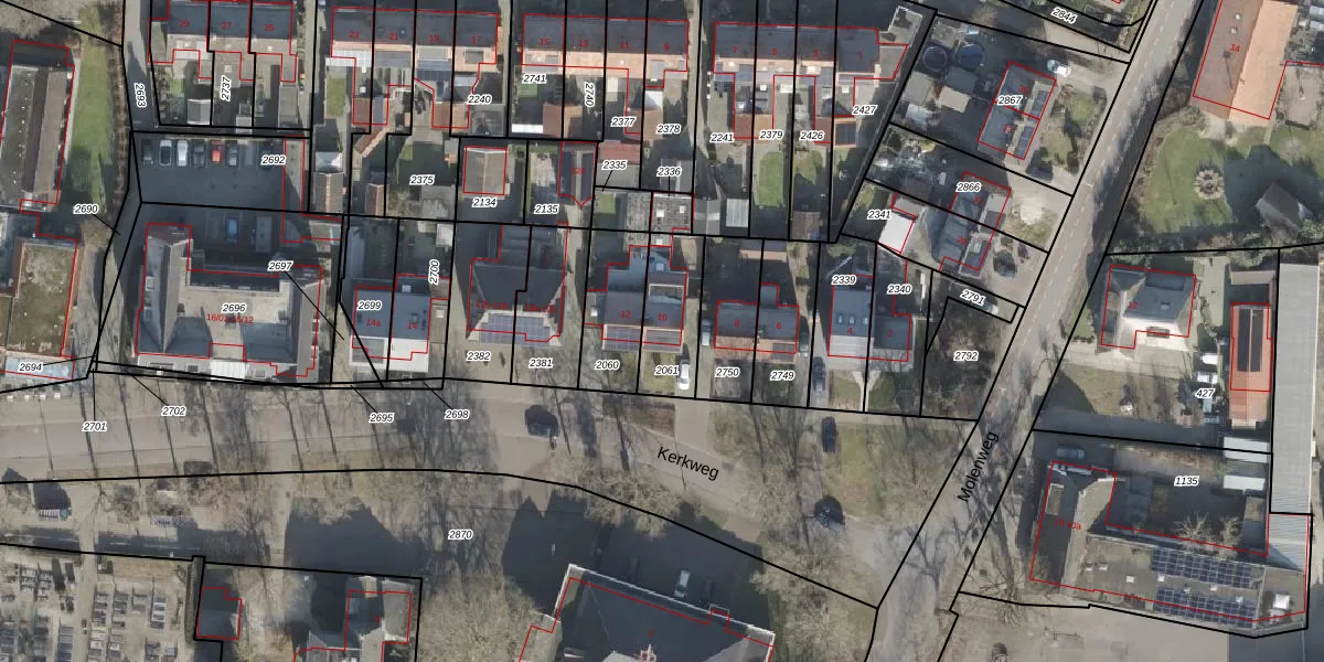 Gebruik de zoekbalk of klik op een perceel voor informatie over de adressen binnen dit perceel.