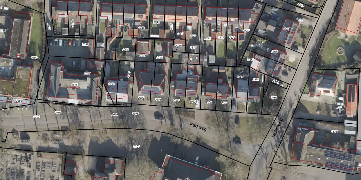 Het perceel waarop Kerkweg 12 staat heeft een oppervlakte van 218 m². Dit is een middelgroot perceel. De perceeloppervlakte wordt geregistreerd door het Kadaster. Gedetailleerde informatie over de maten van dit perceel kunt u vinden in het rapport Kadastrale kaart met maatvoering van Kerkweg 12.