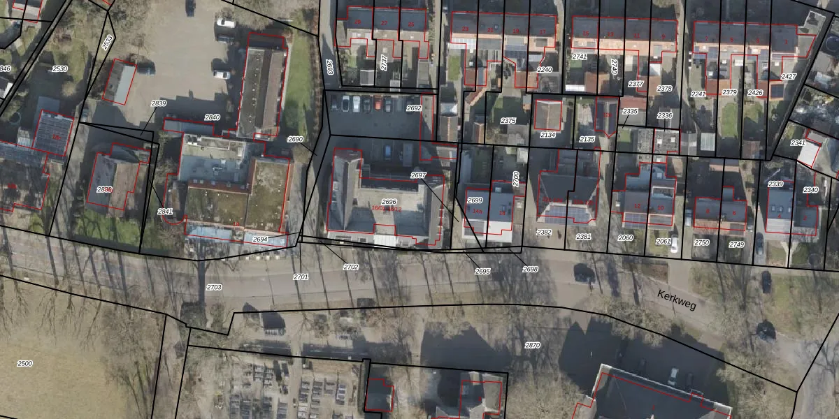Het perceel waarop Kerkweg 16-09 staat heeft een oppervlakte van 850 m². Dit is een groot perceel. De perceeloppervlakte wordt geregistreerd door het Kadaster. Gedetailleerde informatie over de maten van dit perceel kunt u vinden in het rapport Kadastrale kaart met maatvoering van Kerkweg 16-09.