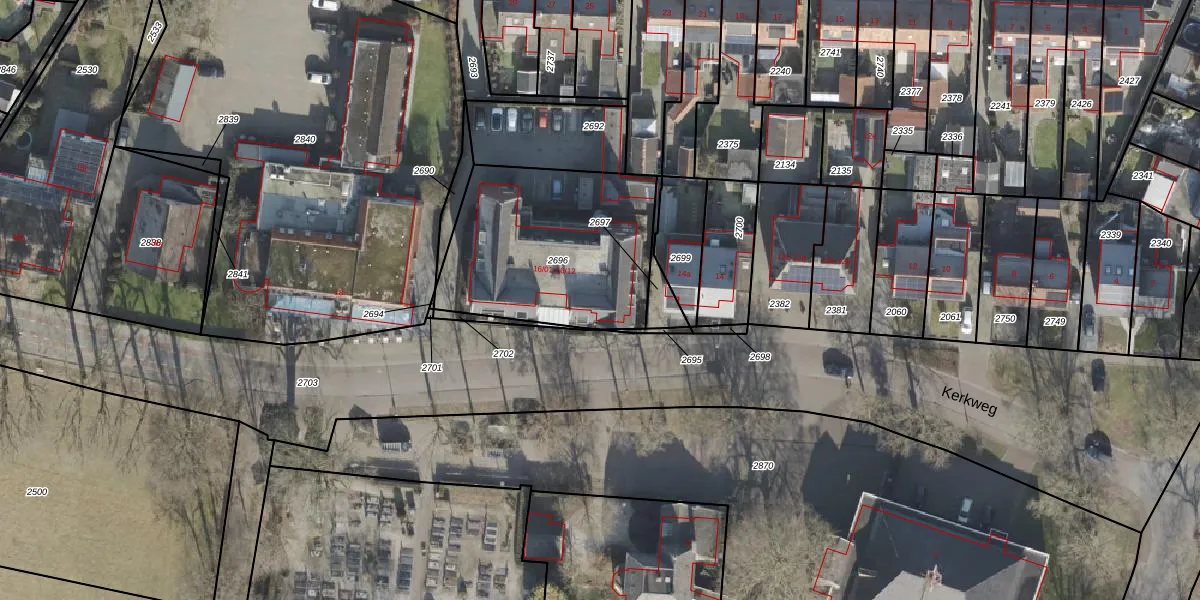 Kerkweg 16-01 is gelegen op kadastraal perceel HLD01F2696. Deze kadastrale aanduiding is uniek en wordt gebruikt door het Kadaster om eigendomsrechten en andere zakelijke rechten vast te leggen. Het perceel maakt onderdeel uit van de kadastrale gemeente Hellendoorn.