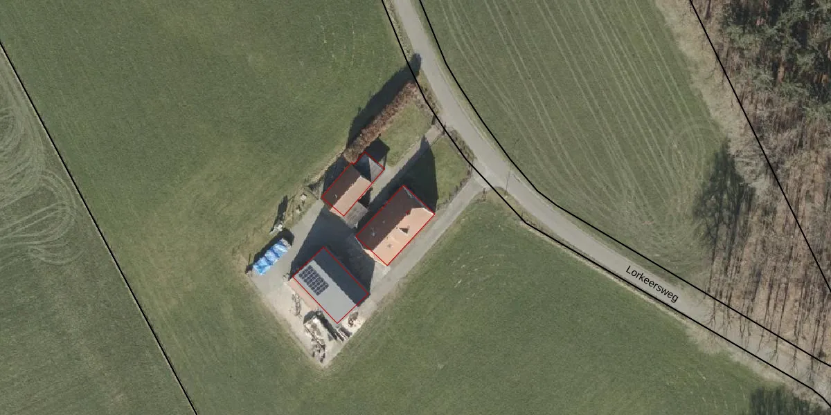 Het perceel waarop Lorkeersweg 1 staat heeft een oppervlakte van 2,7 ha. Dit is een zeer groot perceel. De perceeloppervlakte wordt geregistreerd door het Kadaster. Gedetailleerde informatie over de maten van dit perceel kunt u vinden in het rapport Kadastrale kaart met maatvoering van Lorkeersweg 1.