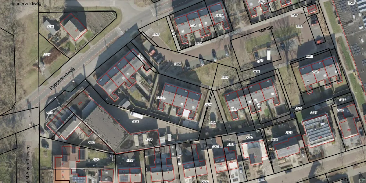 Het perceel waarop Marcke 4 staat heeft een oppervlakte van 1583 m². Dit is een zeer groot perceel. De perceeloppervlakte wordt geregistreerd door het Kadaster. Gedetailleerde informatie over de maten van dit perceel kunt u vinden in het rapport Kadastrale kaart met maatvoering van Marcke 4.