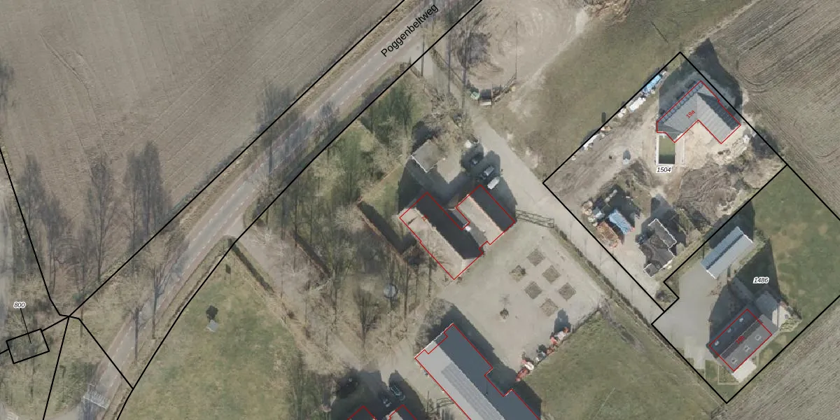 Het perceel waarop Poggenbeltweg 21 staat heeft een oppervlakte van 5,5 ha. Dit is een zeer groot perceel. De perceeloppervlakte wordt geregistreerd door het Kadaster. Gedetailleerde informatie over de maten van dit perceel kunt u vinden in het rapport Kadastrale kaart met maatvoering van Poggenbeltweg 21.