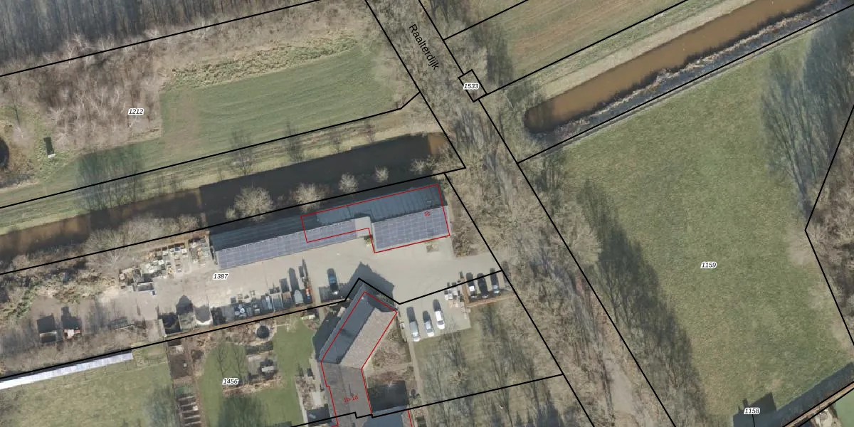 Het perceel waarop Raalterdijk 1-c staat heeft een oppervlakte van 2995 m². Dit is een zeer groot perceel. De perceeloppervlakte wordt geregistreerd door het Kadaster. Gedetailleerde informatie over de maten van dit perceel kunt u vinden in het rapport Kadastrale kaart met maatvoering van Raalterdijk 1-c.