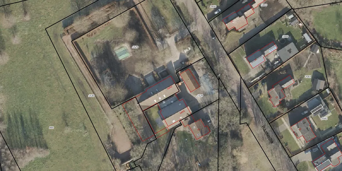 Het perceel waarop Raalterdijk 1-a-02 staat heeft een oppervlakte van 3140 m². Dit is een zeer groot perceel. De perceeloppervlakte wordt geregistreerd door het Kadaster. Gedetailleerde informatie over de maten van dit perceel kunt u vinden in het rapport Kadastrale kaart met maatvoering van Raalterdijk 1-a-02.