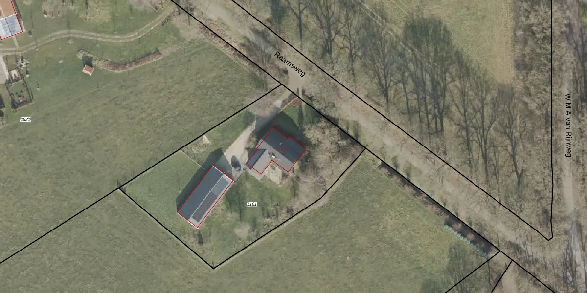 Raamsweg 13 is gelegen op kadastraal perceel HLD01S1161. Deze kadastrale aanduiding is uniek en wordt gebruikt door het Kadaster om eigendomsrechten en andere zakelijke rechten vast te leggen. Het perceel maakt onderdeel uit van de kadastrale gemeente Hellendoorn.