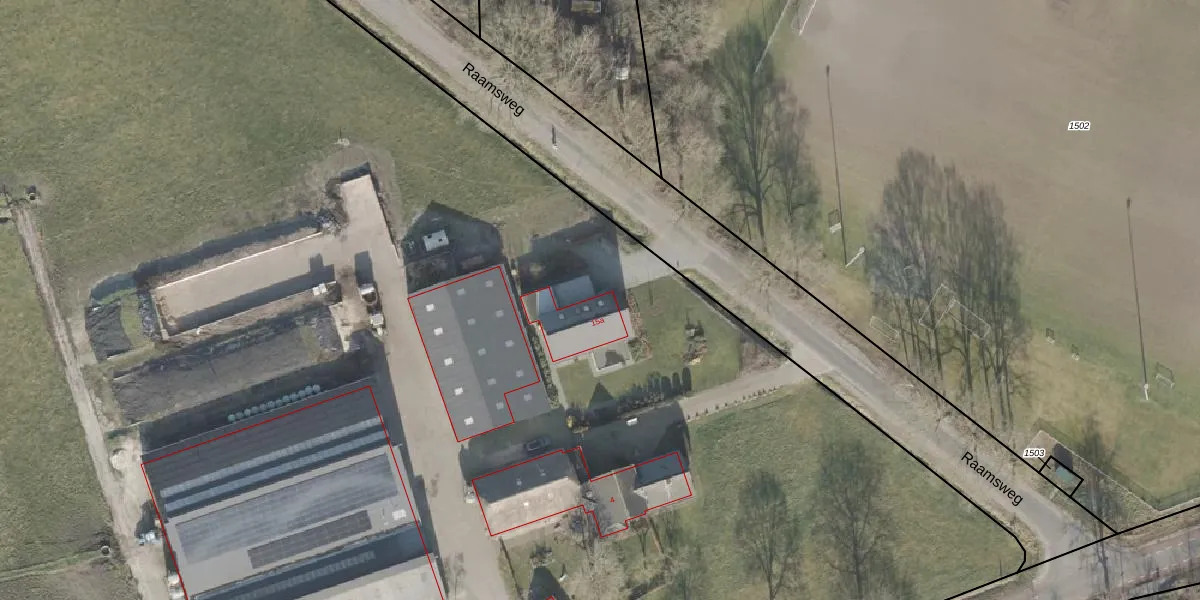 Het perceel waarop Raamsweg 15-a staat heeft een oppervlakte van 4,2 ha. Dit is een zeer groot perceel. De perceeloppervlakte wordt geregistreerd door het Kadaster. Gedetailleerde informatie over de maten van dit perceel kunt u vinden in het rapport Kadastrale kaart met maatvoering van Raamsweg 15-a.