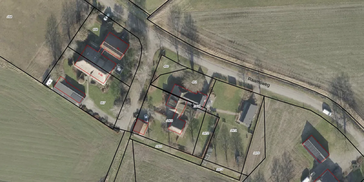 Het perceel waarop Raamsweg 7 staat heeft een oppervlakte van 430 m². Dit is een groot perceel. De perceeloppervlakte wordt geregistreerd door het Kadaster. Gedetailleerde informatie over de maten van dit perceel kunt u vinden in het rapport Kadastrale kaart met maatvoering van Raamsweg 7.