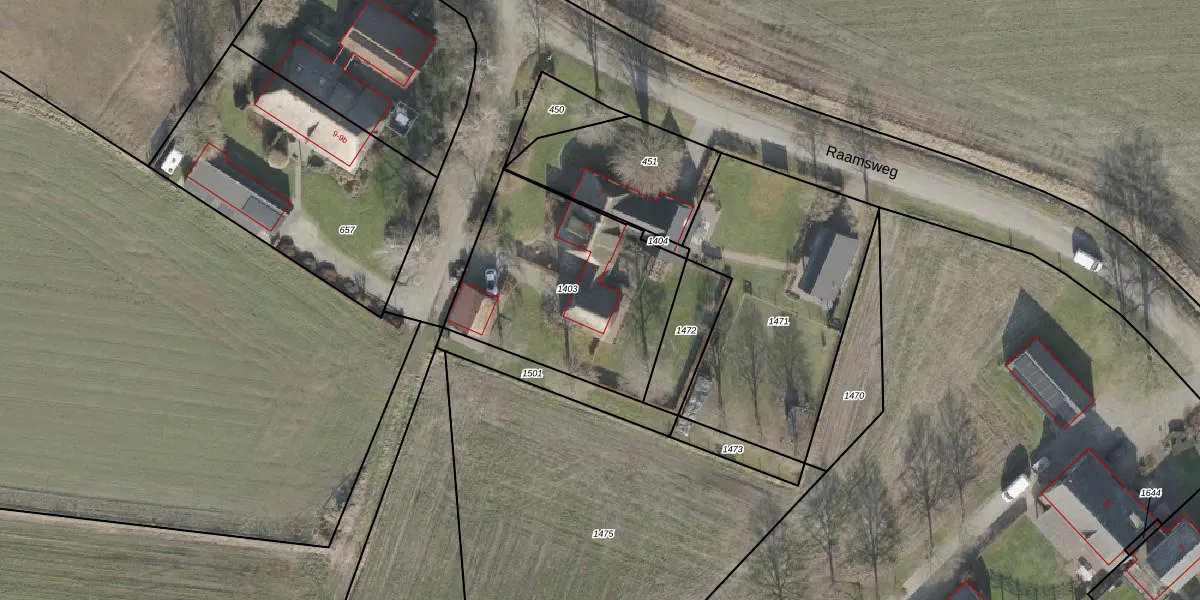 Het perceel waarop Raamsweg 7-a staat heeft een oppervlakte van 913 m². Dit is een groot perceel. De perceeloppervlakte wordt geregistreerd door het Kadaster. Gedetailleerde informatie over de maten van dit perceel kunt u vinden in het rapport Kadastrale kaart met maatvoering van Raamsweg 7-a.