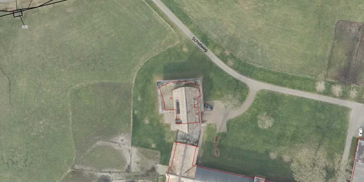 Het perceel waarop Schotweg 11 staat heeft een oppervlakte van 15,6 ha. Dit is een zeer groot perceel. De perceeloppervlakte wordt geregistreerd door het Kadaster. Gedetailleerde informatie over de maten van dit perceel kunt u vinden in het rapport Kadastrale kaart met maatvoering van Schotweg 11.