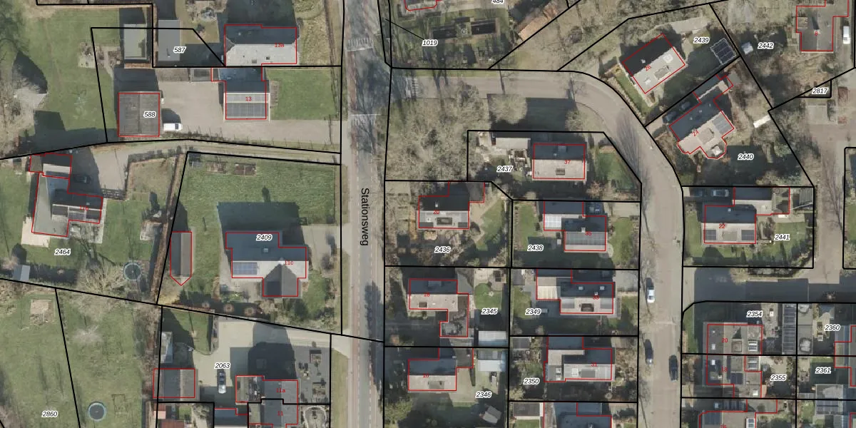 Het perceel waarop Stationsweg 20 staat heeft een oppervlakte van 588 m². Dit is een groot perceel. De perceeloppervlakte wordt geregistreerd door het Kadaster. Gedetailleerde informatie over de maten van dit perceel kunt u vinden in het rapport Kadastrale kaart met maatvoering van Stationsweg 20.