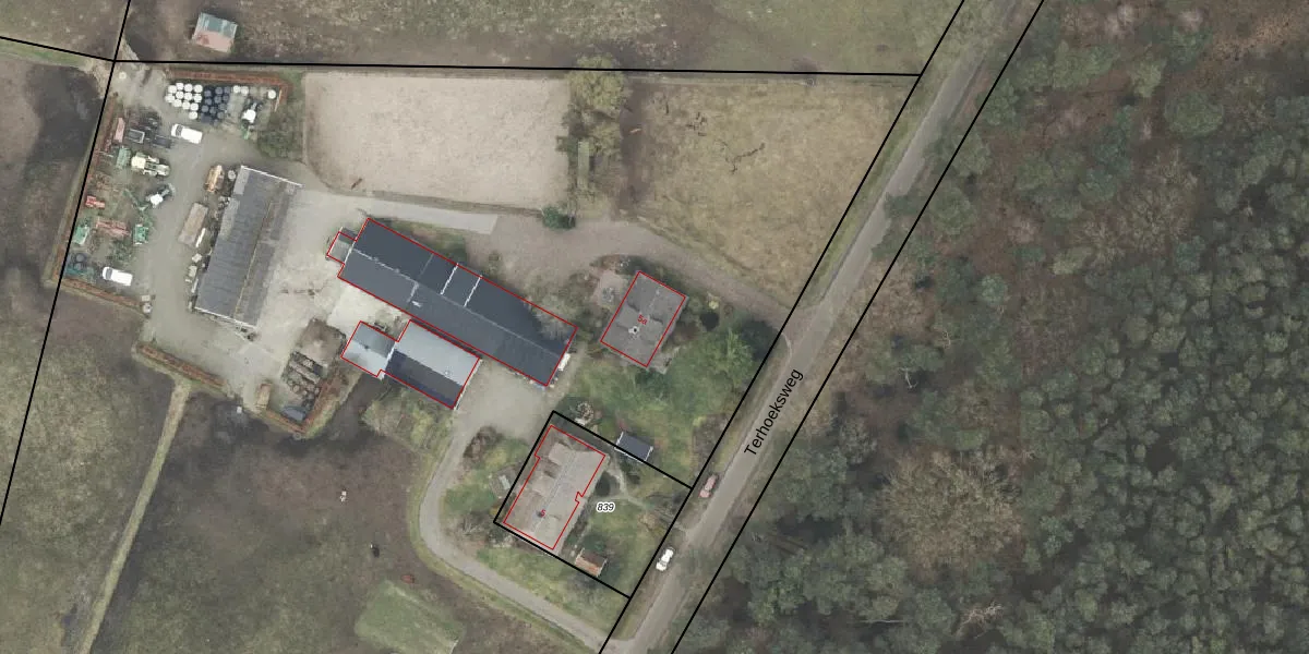 Het perceel waarop Terhoeksweg 5-a staat heeft een oppervlakte van 3,3 ha. Dit is een zeer groot perceel. De perceeloppervlakte wordt geregistreerd door het Kadaster. Gedetailleerde informatie over de maten van dit perceel kunt u vinden in het rapport Kadastrale kaart met maatvoering van Terhoeksweg 5-a.