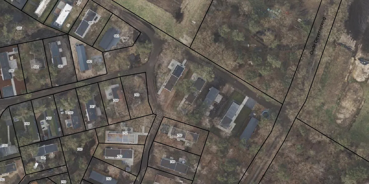 Het perceel waarop het adres ligt is HLD01-R-831. De afkorting 'HLD01' staat voor kadastrale gemeente Hellendoorn. Het perceel is met 2,1 ha relatief groot. Het gemiddelde ligt in de kadastrale gemeente Hellendoorn op 5698,08 m². Het grootste perceel in de kadastrale gemeente is 3,02 km². Het kleinste perceel heeft een oppervlakte van 0 m². Er zijn 6 adressen aanwezig op het perceel. De huidige grenzen van het perceel zijn digitaal in de Basisregistratie Kadaster (BRK) geregistreerd op 30-11-2012.