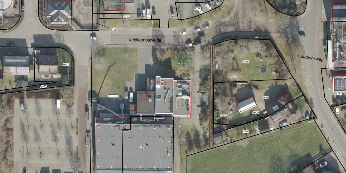 Veldkampsweide 1 is gelegen op kadastraal perceel HLD01F2858. Deze kadastrale aanduiding is uniek en wordt gebruikt door het Kadaster om eigendomsrechten en andere zakelijke rechten vast te leggen. Het perceel maakt onderdeel uit van de kadastrale gemeente Hellendoorn.