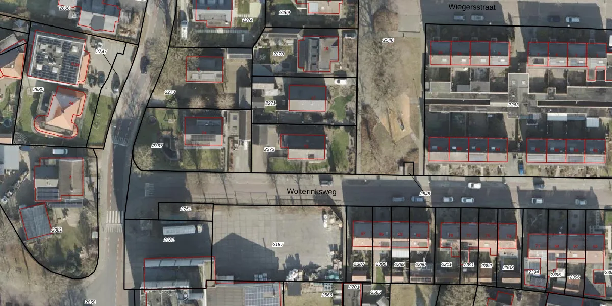 Het perceel waarop Wolterinksweg 72 staat heeft een oppervlakte van 545 m². Dit is een groot perceel. De perceeloppervlakte wordt geregistreerd door het Kadaster. Gedetailleerde informatie over de maten van dit perceel kunt u vinden in het rapport Kadastrale kaart met maatvoering van Wolterinksweg 72.