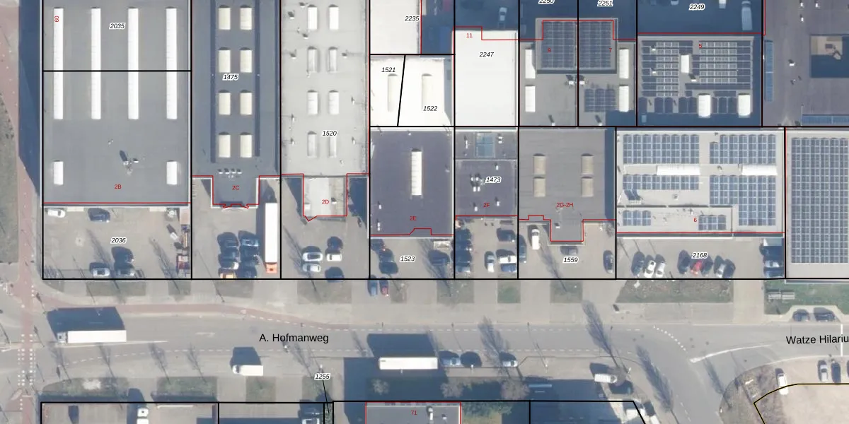 A. Hofmanweg 2-E is gelegen op kadastraal perceel HLM02N1523. Deze kadastrale aanduiding is uniek en wordt gebruikt door het Kadaster om eigendomsrechten en andere zakelijke rechten vast te leggen. Het perceel maakt onderdeel uit van de kadastrale gemeente Haarlem.