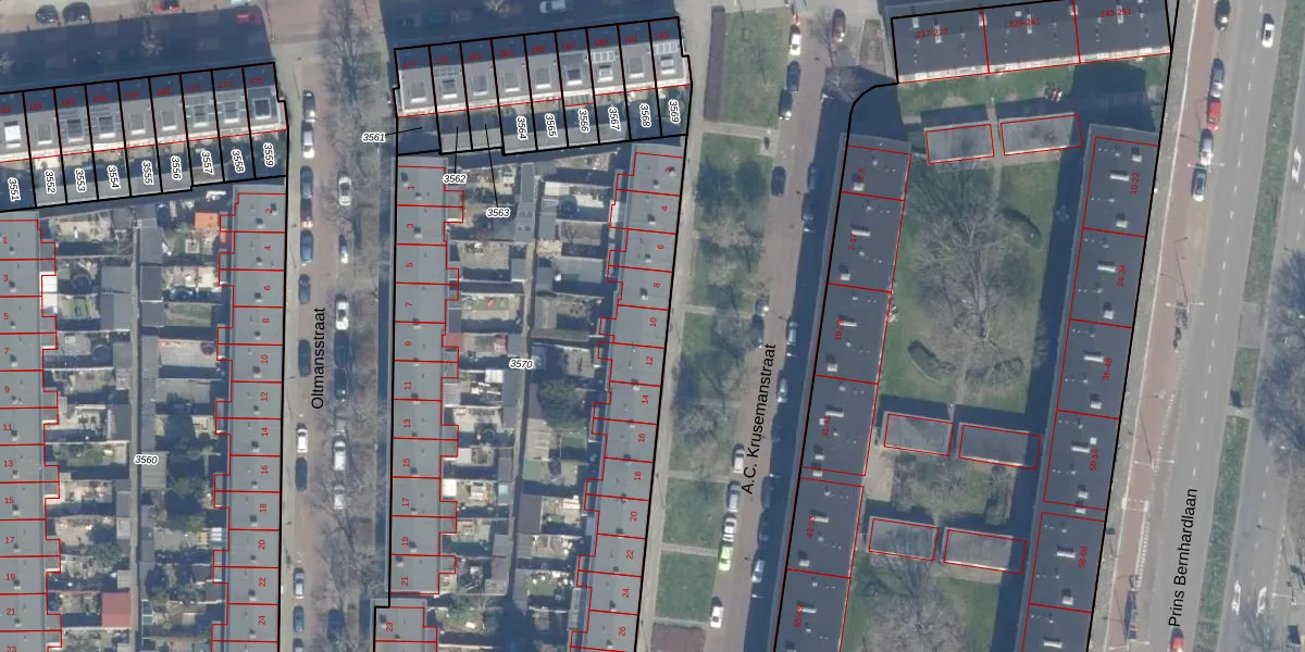 Het perceel waarop A.C. Krusemanstraat 10 staat heeft een oppervlakte van 3858 m². Dit is een zeer groot perceel. De perceeloppervlakte wordt geregistreerd door het Kadaster. Gedetailleerde informatie over de maten van dit perceel kunt u vinden in het rapport Kadastrale kaart met maatvoering van A.C. Krusemanstraat 10.