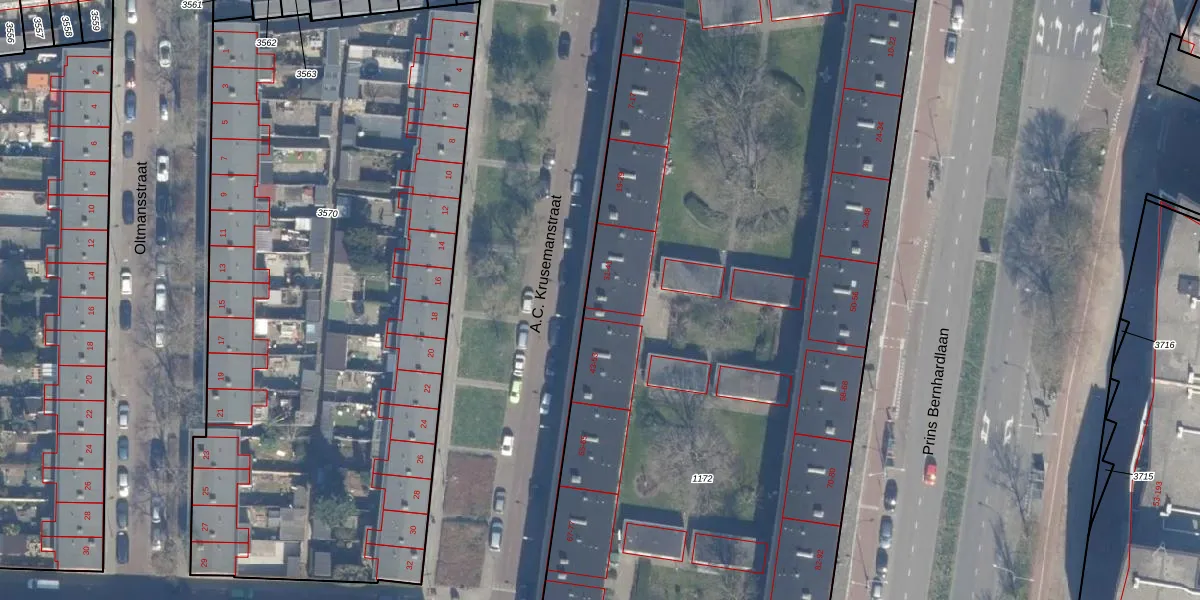 Het perceel waarop A.C. Krusemanstraat 41 staat heeft een oppervlakte van 9320 m². Dit is een zeer groot perceel. De perceeloppervlakte wordt geregistreerd door het Kadaster. Gedetailleerde informatie over de maten van dit perceel kunt u vinden in het rapport Kadastrale kaart met maatvoering van A.C. Krusemanstraat 41.