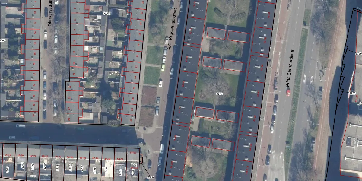 Het perceel waarop A.C. Krusemanstraat 63 staat heeft een oppervlakte van 9320 m². Dit is een zeer groot perceel. De perceeloppervlakte wordt geregistreerd door het Kadaster. Gedetailleerde informatie over de maten van dit perceel kunt u vinden in het rapport Kadastrale kaart met maatvoering van A.C. Krusemanstraat 63.