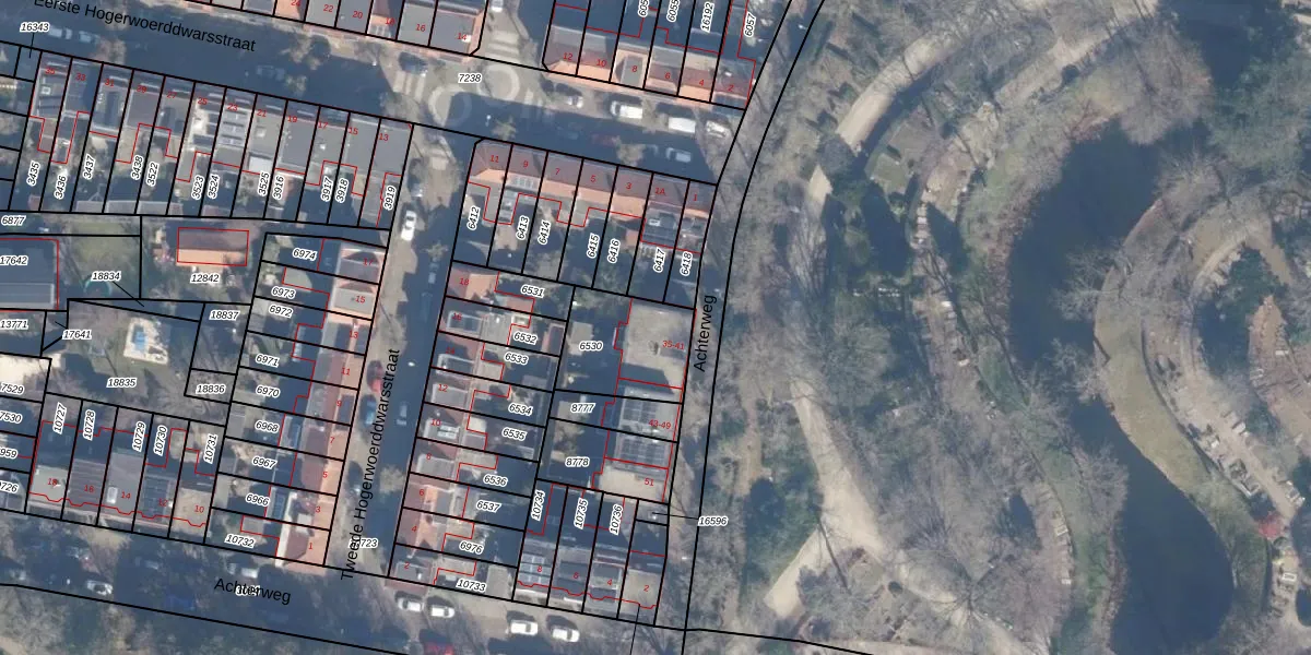 Het perceel waarop Achterweg 39 staat heeft een oppervlakte van 300 m². Dit is een groot perceel. De perceeloppervlakte wordt geregistreerd door het Kadaster. Gedetailleerde informatie over de maten van dit perceel kunt u vinden in het rapport Kadastrale kaart met maatvoering van Achterweg 39.