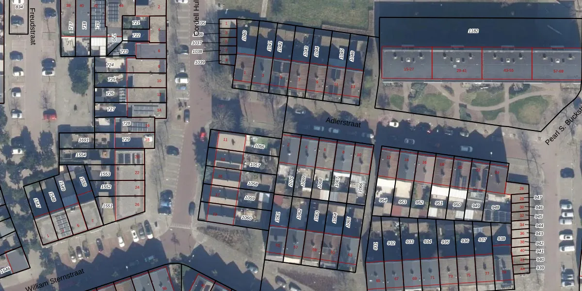 Het perceel waarop Adlerstraat 2 staat heeft een oppervlakte van 137 m². Dit is een middelgroot perceel. De perceeloppervlakte wordt geregistreerd door het Kadaster. Gedetailleerde informatie over de maten van dit perceel kunt u vinden in het rapport Kadastrale kaart met maatvoering van Adlerstraat 2.