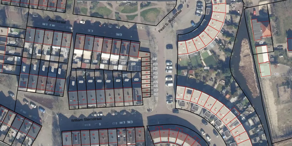 Het perceel waarop Adlerstraat 34 staat heeft een oppervlakte van 19 m². Dit is een klein perceel. De perceeloppervlakte wordt geregistreerd door het Kadaster. Gedetailleerde informatie over de maten van dit perceel kunt u vinden in het rapport Kadastrale kaart met maatvoering van Adlerstraat 34.