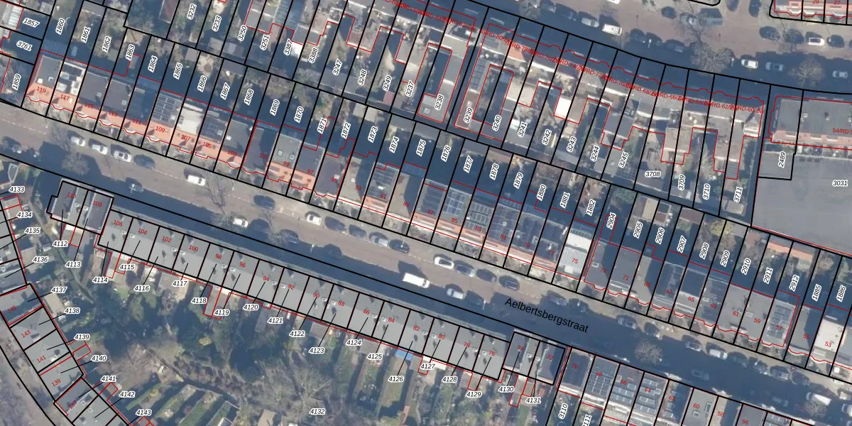 Het perceel waarop Aelbertsbergstraat 87 staat heeft een oppervlakte van 160 m². Dit is een middelgroot perceel. De perceeloppervlakte wordt geregistreerd door het Kadaster. Gedetailleerde informatie over de maten van dit perceel kunt u vinden in het rapport Kadastrale kaart met maatvoering van Aelbertsbergstraat 87.