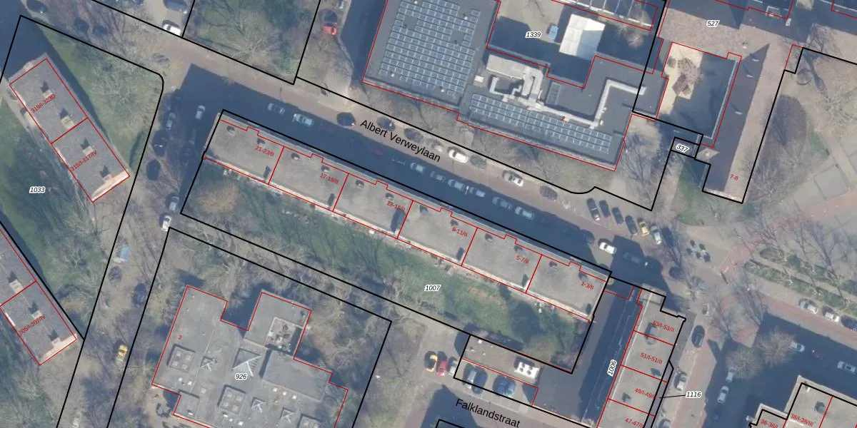 Het perceel waarop Albert Verweylaan 11 staat heeft een oppervlakte van 2565 m². Dit is een zeer groot perceel. De perceeloppervlakte wordt geregistreerd door het Kadaster. Gedetailleerde informatie over de maten van dit perceel kunt u vinden in het rapport Kadastrale kaart met maatvoering van Albert Verweylaan 11.
