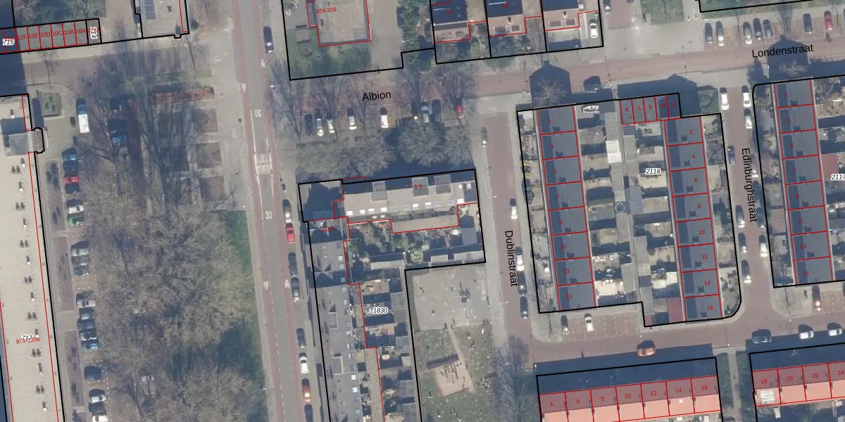 Het perceel waarop Albion 8 staat heeft een oppervlakte van 1871 m². Dit is een zeer groot perceel. De perceeloppervlakte wordt geregistreerd door het Kadaster. Gedetailleerde informatie over de maten van dit perceel kunt u vinden in het rapport Kadastrale kaart met maatvoering van Albion 8.